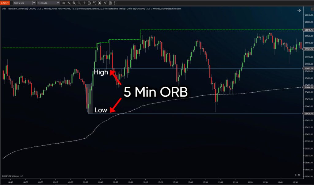 - Opening Range (OR): The high and low prices recorded during the first 5 minutes of the trading day. This range serves as the foundation for the strategy.