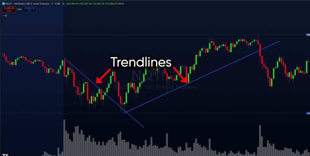 - Uptrend Trendlines: Drawn below the price action, connecting a series of higher lows. At least two lows are required, but three or more confirm the trendline’s validity.